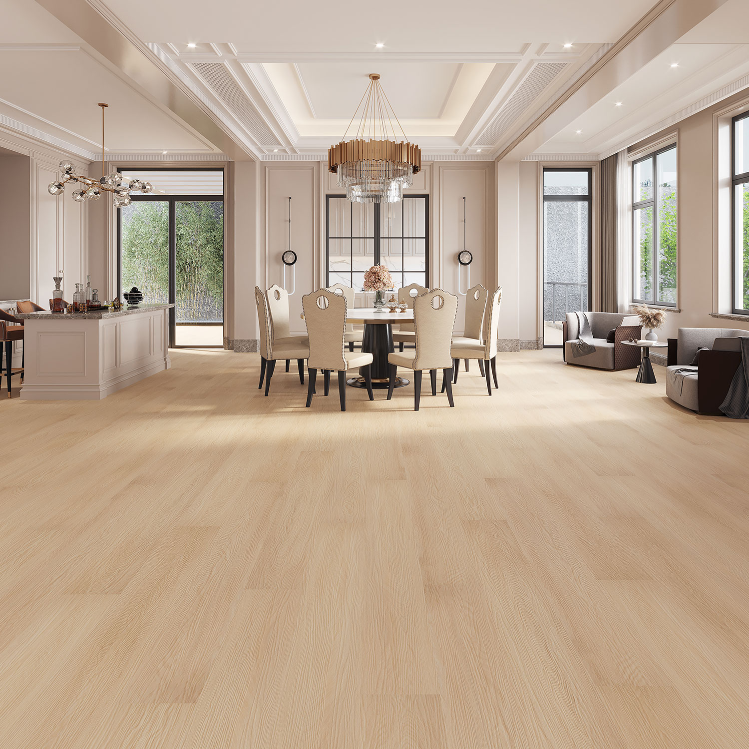 This design captures the natural elegance of oak with remarkable realism, providing a bright and airy atmosphere while maintaining exceptional durability and ease of care.