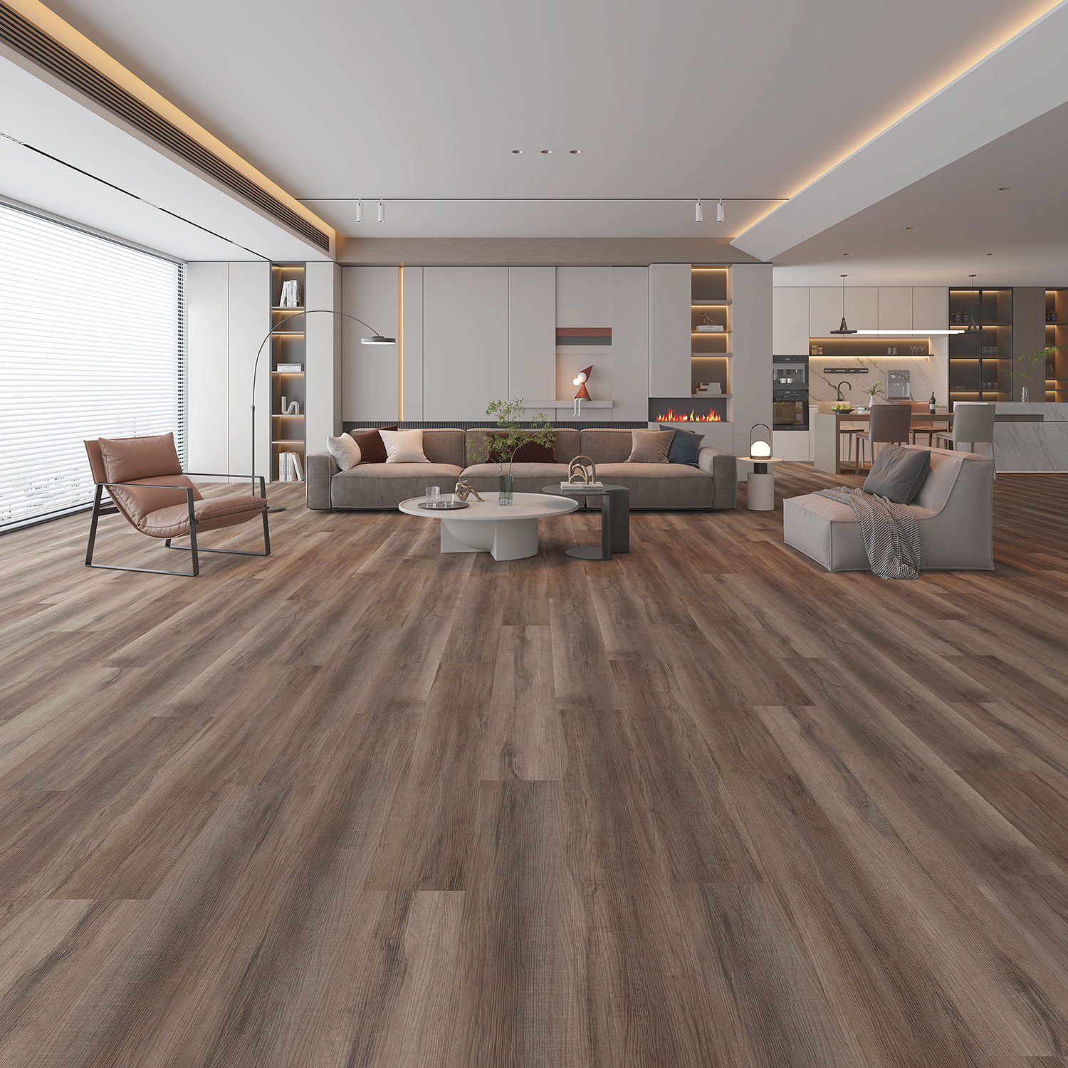 Immerse your space in the rich sophistication of Midnight, a flooring design that blends contemporary warmth with timeless style. Its deep, natural wood grain tones evoke the calm of dusk and the confidence of modern living, transforming any room into a refined sanctuary.
